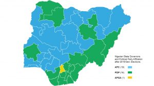 Anambra is the only state currently controlled by APGA at governorship level, and the party desperately wants to retain control. PDP, for its part, is looking to regain control of this important Igbo state – the only one that it does not control in the south east of Nigeria – as it battles for federal dominance against the All Progressive Congress (APC) which currently controls the Nigerian presidency. APC controls 19 of Nigeria’s 36 states, PDP 16, and APGA just the one, Anambra State. APC does not itself have much of a foothold in Anambra State, but for strategic reasons it seeks to forestall PDP recapture of the state by enabling APGA retention of control.