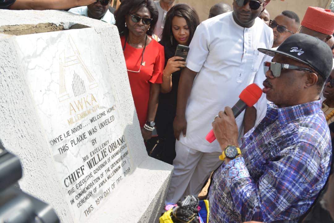 ▲ Governor Willie Obiano unveiling a plaque at the site at the Awka Millennium City groundbreaking ceremony