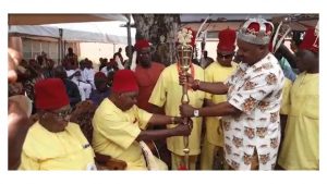 ▲ Ozo Augustine Ndigwe apparently being handed the staff of office by the late Regent, Ozo Obiora Essel