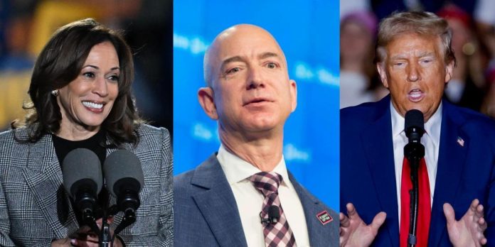 In his write-up on October 28, Washington Post owner Jeff Bezos framed his “wealth and business interests” as “a bulwark against intimidation,” insisting he was not under pressure but had acted on “principle” in vetoing his paper’s endorsement of Kamala Harris.